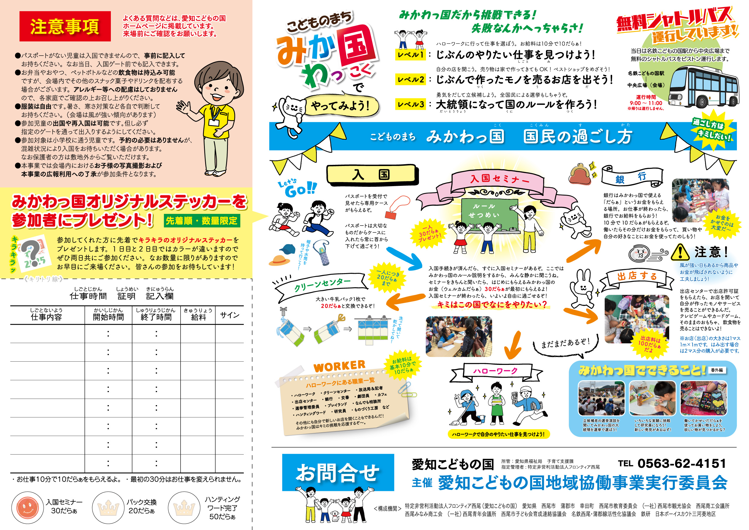 - 参加対象は小学校に通う児童です。予約の必要はありませんが、混雑状況により入国をお断りする場合があります。