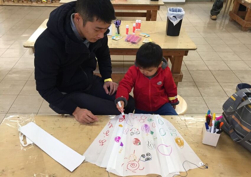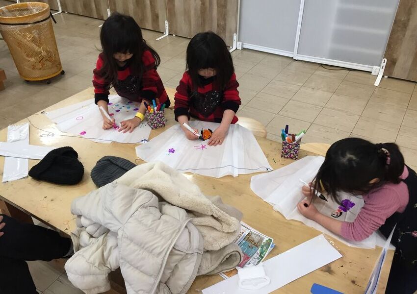 好きな絵や模様を描いて、オリジナルの凧を作ってあそぼう!