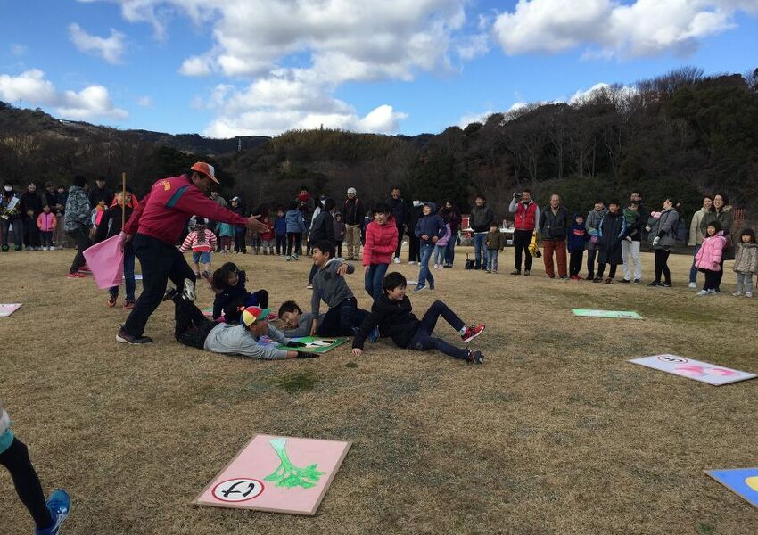 「ジャンボだるま落とし」や「むかしあそび道具」もあるぞ!! キミは出来るかな?!