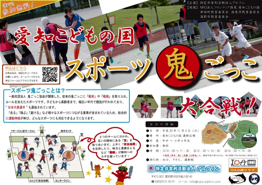 参加受付中! 愛知こどもの国 11/4日 「 スポーツ鬼ごっこ 」の