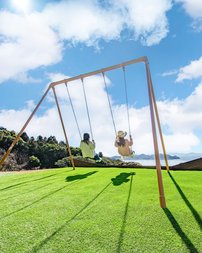 ブランコの設置場所は、三河湾が望める景色のいい場所です!
