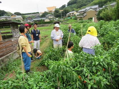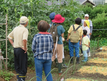 農園内を歩くだけでも全員汗が噴き出る暑さだっと感想であった。なお子どもさんは暑いと言いながら野菜の収穫を張り切っていた。元気な野菜を観られて楽しかったと。