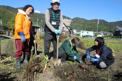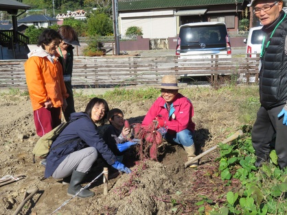 ・今回アメリカオハイオ州から来られたアメリカ人親子3人が参加され、参加者と一緒になって初めての芋掘り体験でいい思い出になり感謝された。