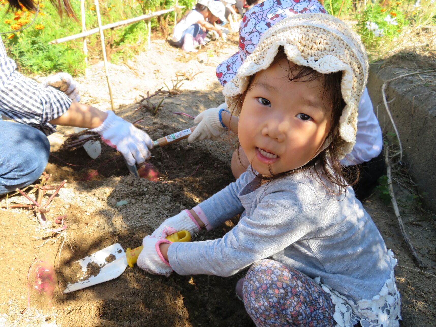 各種野菜の生育状況を観察したり、ダイコン・キク芋・ミカンなどの収穫体験を行いました。